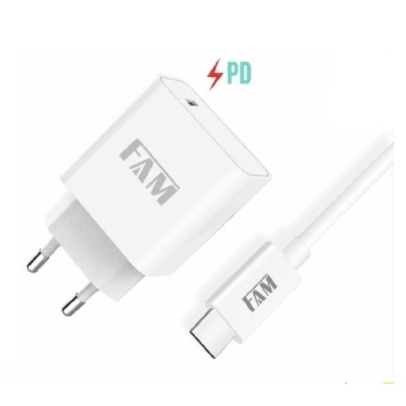 KIT CARREGADOR COM CABO TPC/TPC 1 USB 20W FKT-PD20C ANATEL