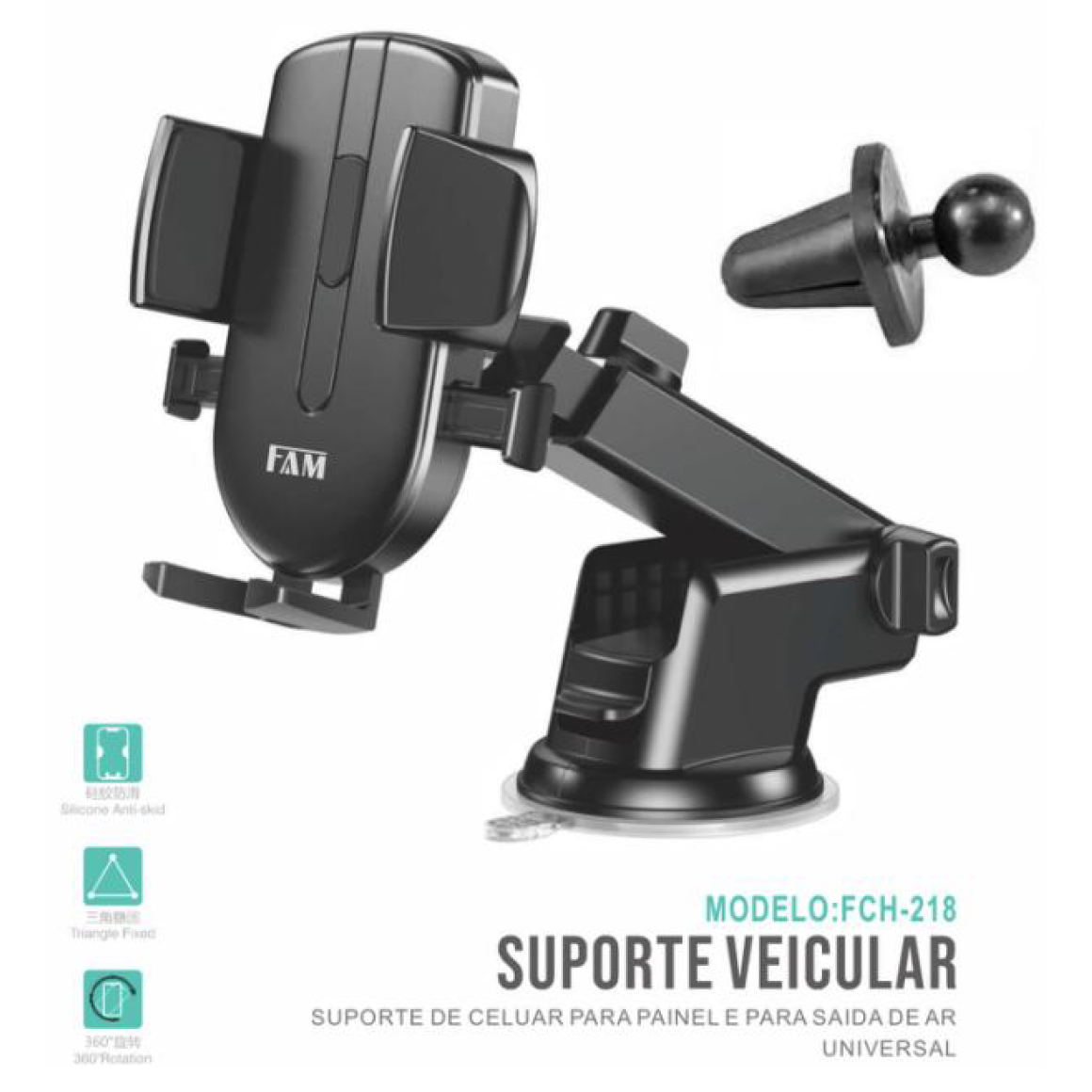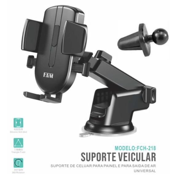 SUPORTE VEICULAR FCH-218 COM VENTOSA E ADAPTADOR PARA SAÍDA DE AR