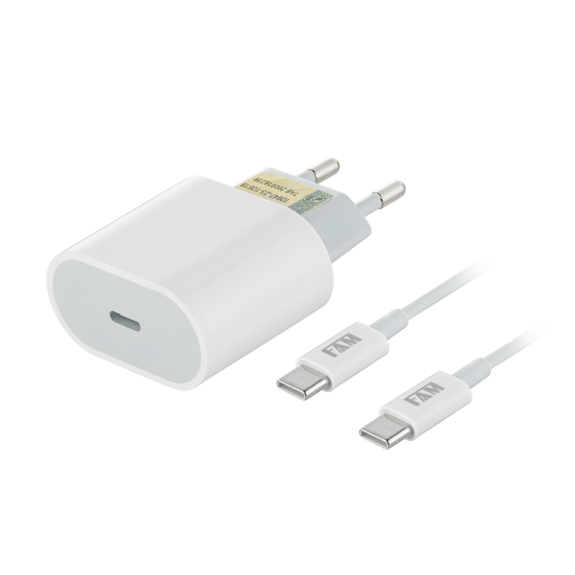 KIT CARREGADOR COM CABO TPC/TPC 1 USB 20W FKT-PD52C ANATEL